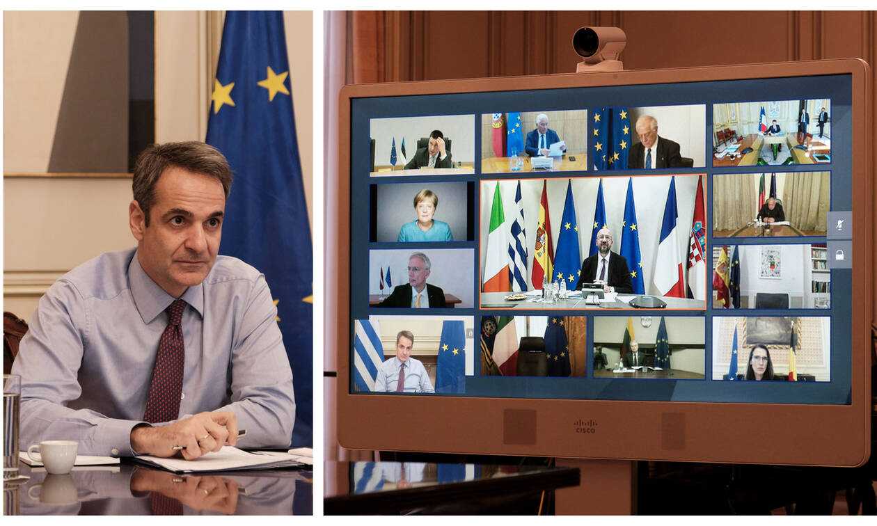 Ο Κυριάκος Μητσοτάκης στην τοποθέτηση του σημείωσε ότι την πρόταση αυτή υποστηρίζουν εννέα ηγέτες κρατών-μελών που εκπροσωπούν το 57% του ΑΕΠ της Ευρωζώνης (Ελλάδα, Γαλλία, Ιταλία, Ισπανία, Πορτογαλία, Βέλγιο, Λουξεμβούργο, Ιρλανδία, Σλοβενία). Ο πρωθυπουργός, σύμφωνα με κυβερνητικές πηγές, επεσήμανε επίσης ότι στις Ηνωμένες Πολιτείες ανακοινώθηκε πακέτο στήριξης της οικονομίας ύψους 2 τρισ. δολαρίων και έχουν χαθεί ήδη 3 εκατομμύρια θέσεις εργασίας τονίζοντας έτσι την ανάγκη λήψης γενναίων πρωτοβουλιών. Σύμφωνα με τις ίδιες πηγές, ο κ. Μητσοτάκης υπογράμμισε την αναντιστοιχία ανάμεσα στους όρους που χρησιμοποιούνται για την περιγραφή αυτής της κρίσης – όπως επική, πρωτοφανής άνευ προηγουμένου κ.λπ. – και στα μέτρα που έχουν ληφθεί μέχρι στιγμής ζητώντας να διερευνηθούν όλοι οι εναλλακτικοί τρόποι μίας ενιαίας ευρωπαϊκής απάντησης.