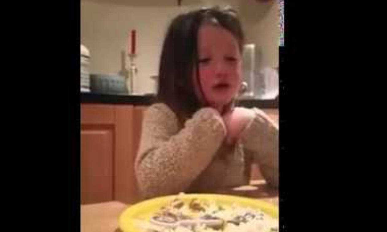 Βλέπει το φαγητό του και ξεσπά σε κλάματα.Έχει αποφασίσει ότι δεν θα τρώει πια κρέας ούτε φυσικά τη γαλοπούλα που είναι στο πιάτο του.