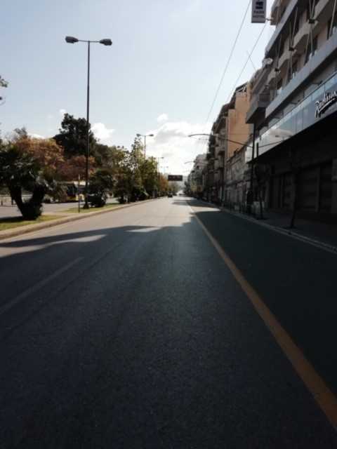 H Λεωφόρος Αλεξάνδρας και η Πατησίων, δυο από τους πιο πολυσύχναστους δρόμους της Αττικής, πλήρως ερημωμένοι.