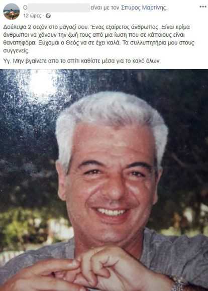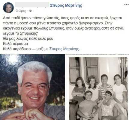 Σαν κεραυνός έπεσε η είδηση ότι ο Σπύρος έφυγε χθες το βράδυ, χτυπημένος από τον φονικό κορονοϊό.