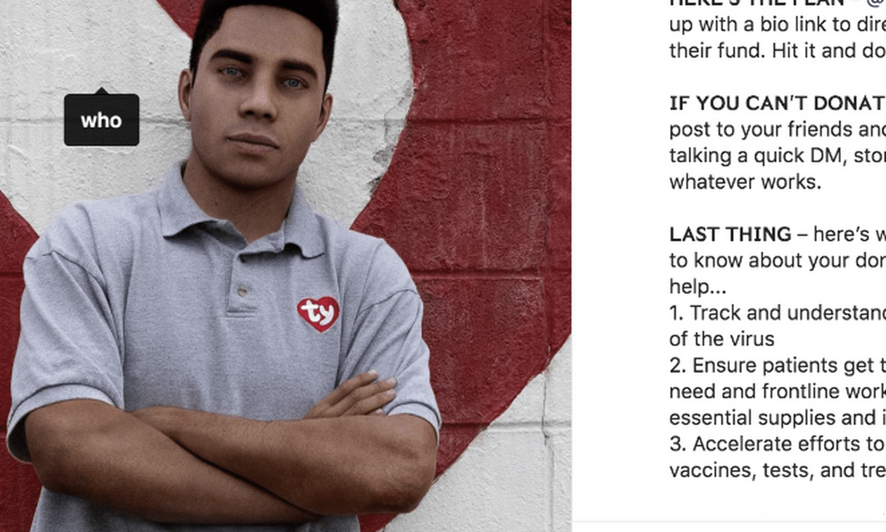 Αναγγέλλοντας την συνεργασία με τον Παγκόσμιο Οργανισμό Υγείας στις 4 Απριλίου, έγραψε στο Instagram: «Συνεργάζομαι με τον @WHO για την καταπολέμηση του κορονοϊού. Ας τους δείξουμε ότι οι νεότερες γενιές είναι σε αυτόν τον αγώνα».