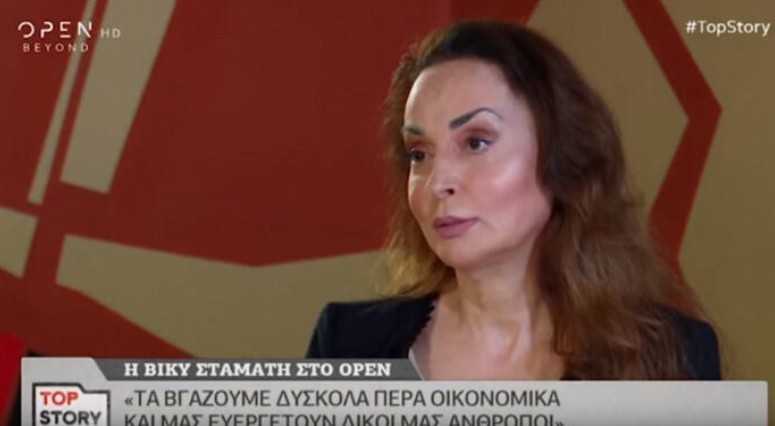 Βίκυ Σταμάτη: «Ζω σε άθλιες συνθήκες με 2.400 ευρώ τον μήνα». «Ζούμε έναν πόλεμο. Μία κατοχή», είπε η Βίκυ Σταμάτη, η οποία παραχώρησε συνέντευξη στον τηλεοπτικό σταθμό OPEN