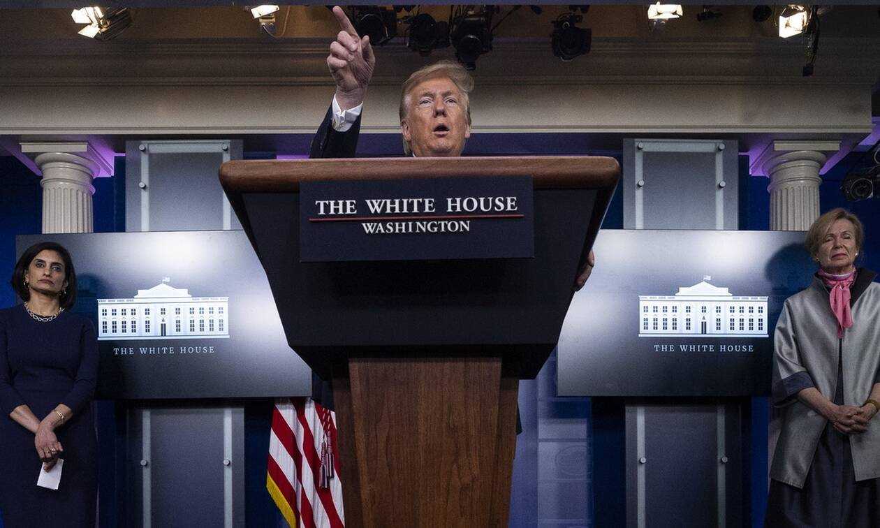 «Θα αναστείλουμε» την καταβολή «των ποσών που προορίζονταν για τον ΠΟΫ», είπε αρχικά ο Τραμπ, κατά τη διάρκεια της καθημερινής συνέντευξης Τύπου που παραχωρεί μαζί με το κλιμάκιο που έχει συστήσει για την αντιμετώπιση της κρίσης της πανδημίας.