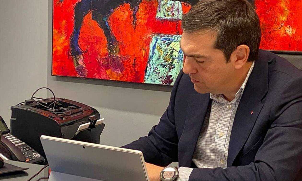 Τηλεδιάσκεψη του Προέδρου του ΣΥΡΙΖΑ, Αλέξη Τσίπρα, με τον Πρόεδρο του Εργατοϋπαλληλικού Κέντρου Αθήνας και εκπροσώπους εργαζομένων στα super market και τις μεταφορές.