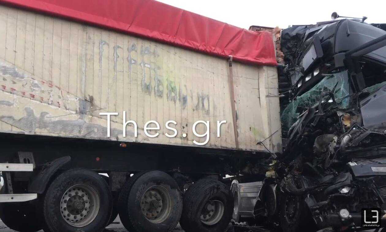 Στο τροχαίο εμπλέκονται δύο νταλίκες, ένα φορτηγό και ένα ΙΧ σύμφωνα με όσα αναφέρει στο ρεπορτάζ του το thes.gr