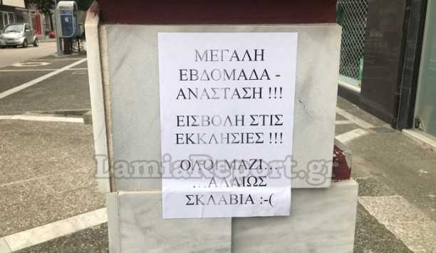 Στη Λαμία καλούν με αφίσες τον κόσμο να κάνει “ντου” στις εκκλησίες (pics)
