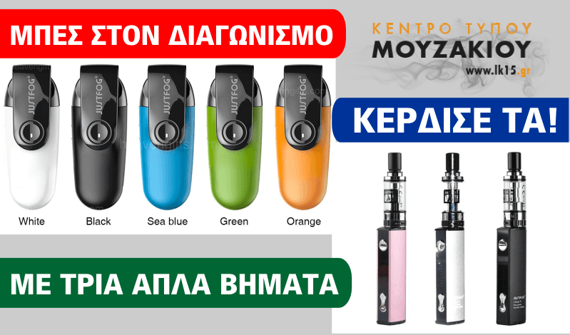 Το ηλεκτρονικό κατάστημα www.lk15.gr προσφέρει κάθε μήνα για δυο τυχερούς από ένα kit ηλεκτρονικού τσιγάρου με τρία απλά βήματα.