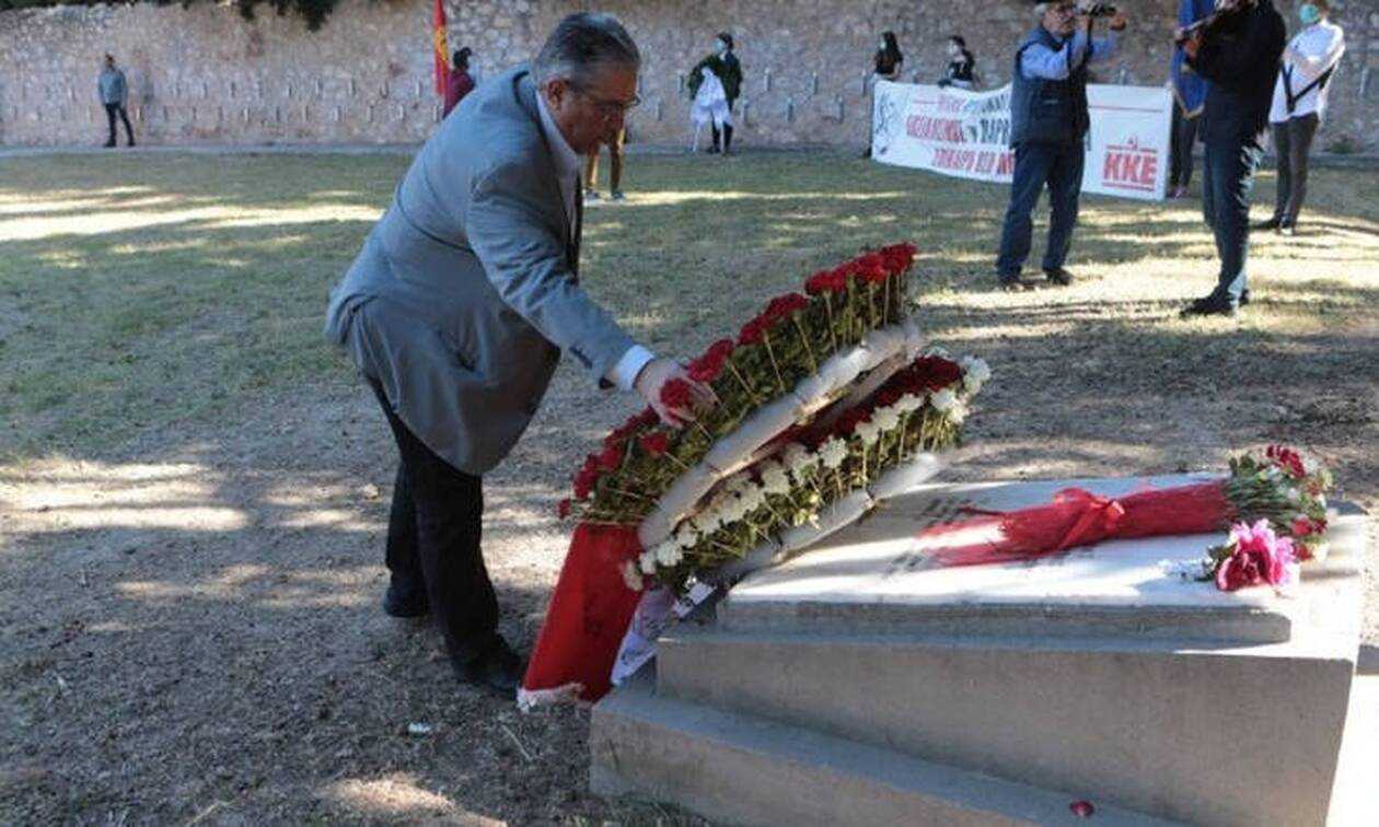 Στεφάνι στο Σκοπευτήριο της Καισαριανής κατέθεσε ανήμερα της Πρωτομαγιάς ο γγ της ΚΕ του ΚΚΕ Δημήτρης Κουτσούμπας.