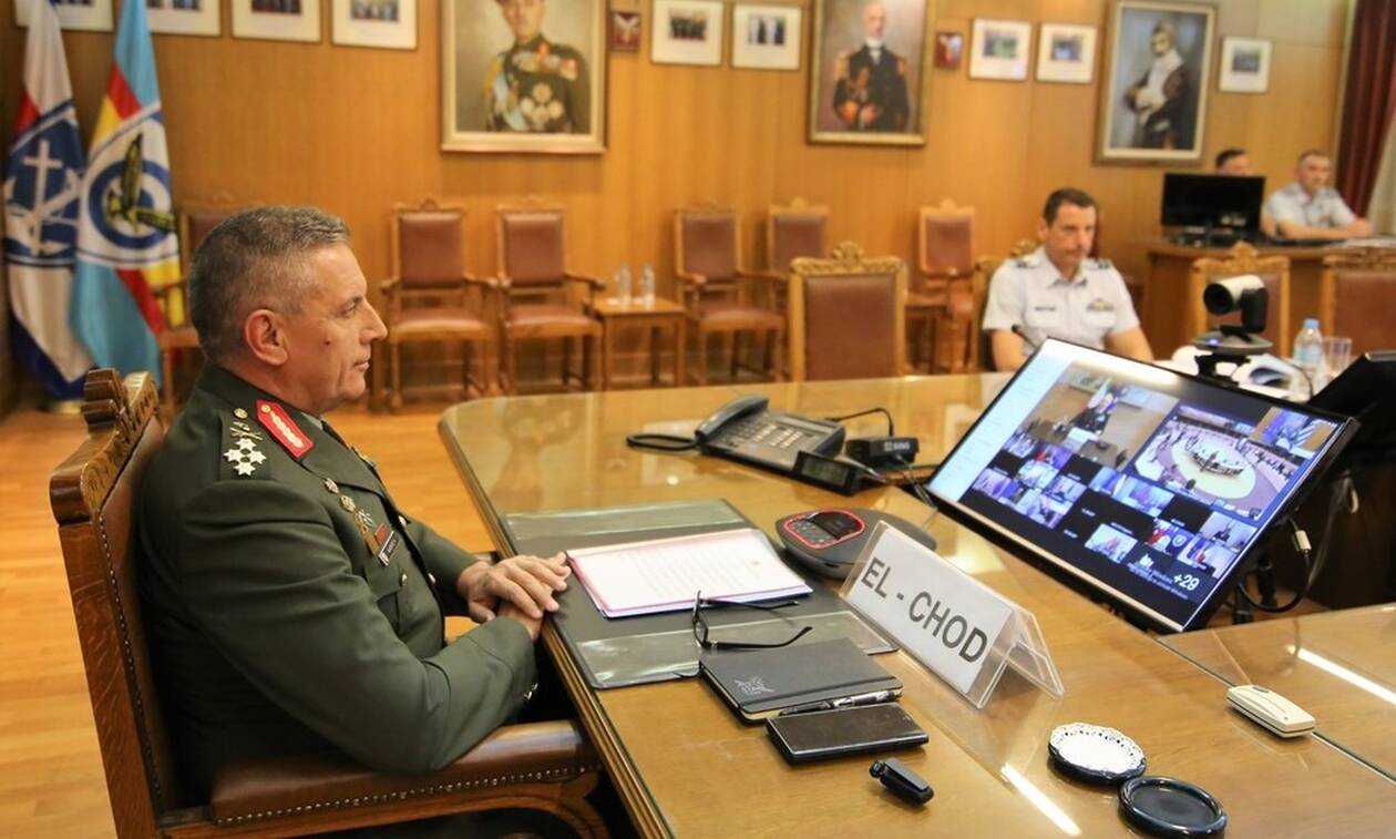 Ο Αρχηγός αναφέρθηκε στην πανδημία COVID-19 και εξέφρασε προς τους ομόλογούς του τα συλλυπητήρια του για τις απώλειές τους. Έδωσε έμφαση αφενός στην επιτυχή αντιμετώπιση της πανδημίας από τις Ελληνικές ΕΔ, οι οποίες διατήρησαν άθικτη την επιχειρησιακή τους ετοιμότητα και ικανότητα, αφετέρου στη συνδρομή τους στο Εθνικό Σύστημα Υγείας. Εν συνεχεία εξέφρασε την αμέριστη υποστήριξή του στις πρωτοβουλίες και δράσεις της EΕ, που έχουν σκοπό τη συλλογική και συντονισμένη αντιμετώπιση ενός ενδεχόμενου δεύτερου κύματος του κορονοϊού.