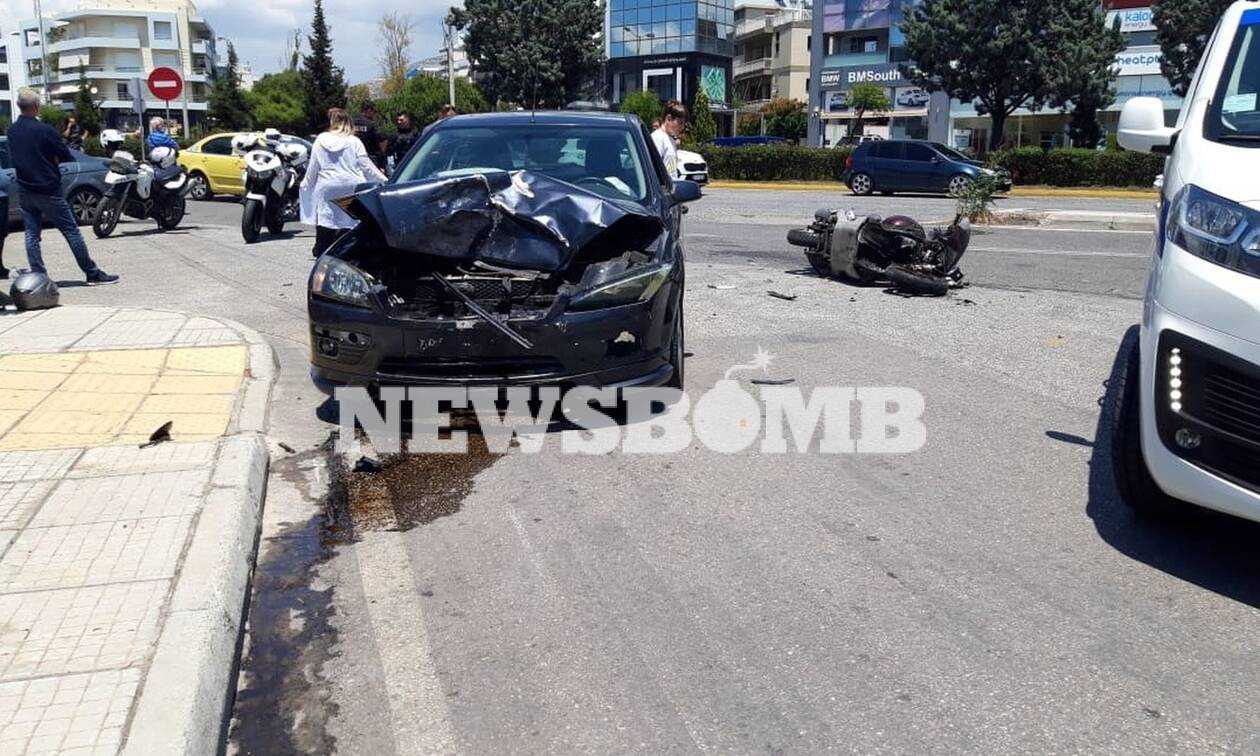 Σύγκρουση επιβατικού με μηχανή, σημειώθηκε στην οδό Σάκη Καράγιωργα, παράδρομο Λεωφ. Βουλιαγμένης.