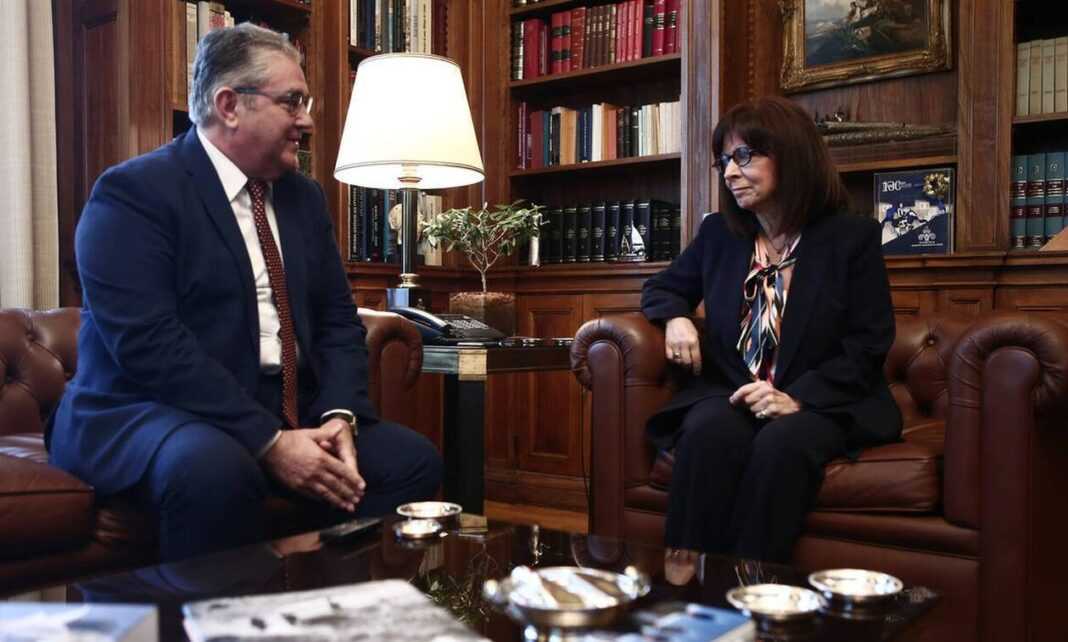«Σχεδόν καθημερινά, η τουρκική ηγεσία, αντί να αναζητά γέφυρες συνεννόησης, προσπαθεί με κάθε τρόπο, με απαράδεκτες μεθοδεύσεις, να αμφισβητεί τα κυριαρχικά μας δικαιώματα», δήλωσε η Πρόεδρος της Δημοκρατίας, Κατερίνα Σακελλαροπούλου, κατά την συνάντησή της, με τον γενικό γραμματέα του ΚΚΕ Δημήτρη Κουτσούμπα στο Προεδρικό Μέγαρο.