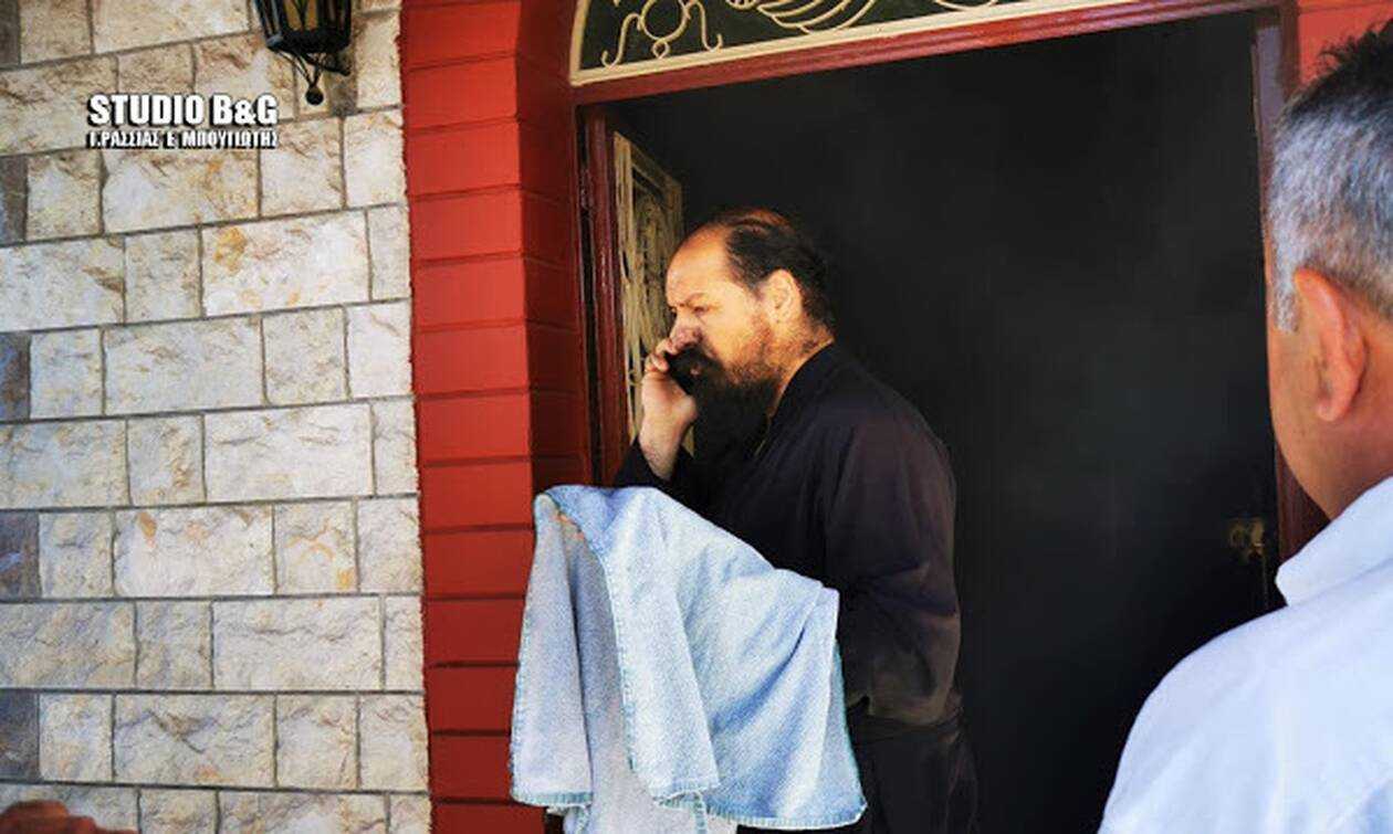 Ο ιερέας δεν δίστασε να αποχωρήσει από την Θεία Λειτουργία του ναού που εορτάζει για να προσπαθήσει να σβήσει την φωτιά.