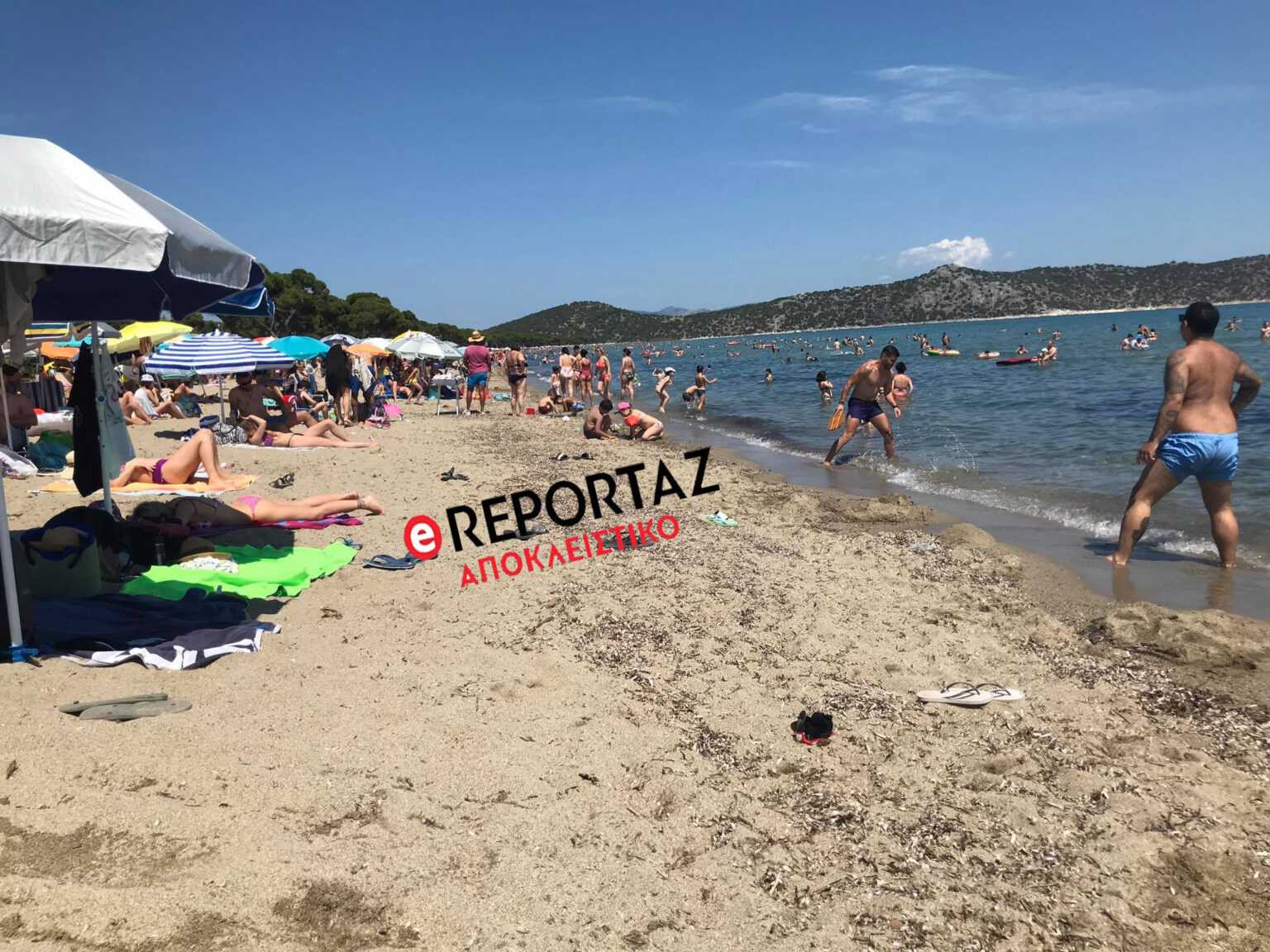 Όλοι δρόμοι οδηγούν σε μία παραλία και στην πολύ φαρδιά και μακριά ακτογραμμή του Σχοινιά πρέπει να έχει μαζευτεί ένα μεγάλο μέρος των κατοίκων του λεκανοπεδίου της Αττικής οι οποίοι αναζητούν λίγη δροσιά.