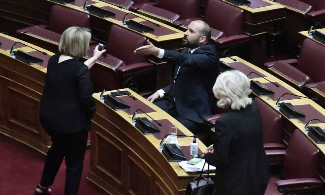 Μαλλιά κουβάρια έγιναν στη Βουλή η Σοφία Βούλτεψη με τους βουλευτές του ΣΥΡΙΖΑ, Δημήτρη Τζανακόπουλο και Σία Αναγνωστοπούλου.