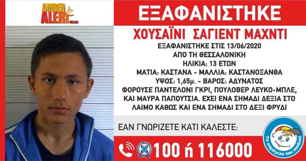 Μια ακόμη εξαφάνιση ανηλίκου έχει θέση σε συναγερμό εδώ και λίγη ώρα τη Θεσσαλονίκη, καθώς αγνοείται ένα 13χρονο αγόρι.