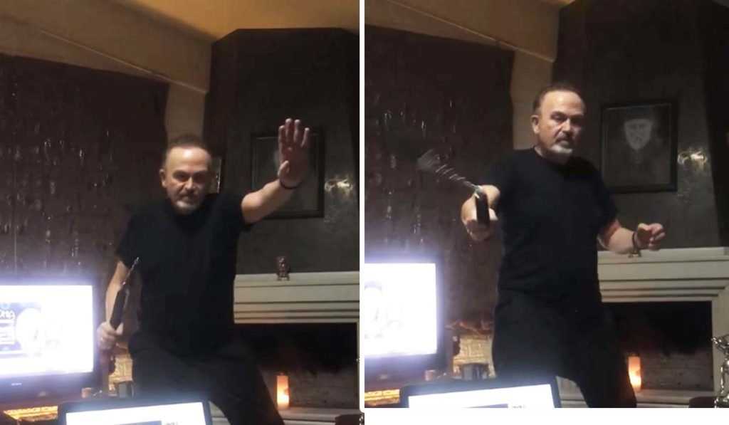 Στο βίντεο που απέσπασε χιλιάδες likes, ο λαϊκός τραγουδιστής προπονείται στο σαλόνι του σπιτιού του με τα γνωστά όπλα πολεμικών τεχνών, Nunchaku.