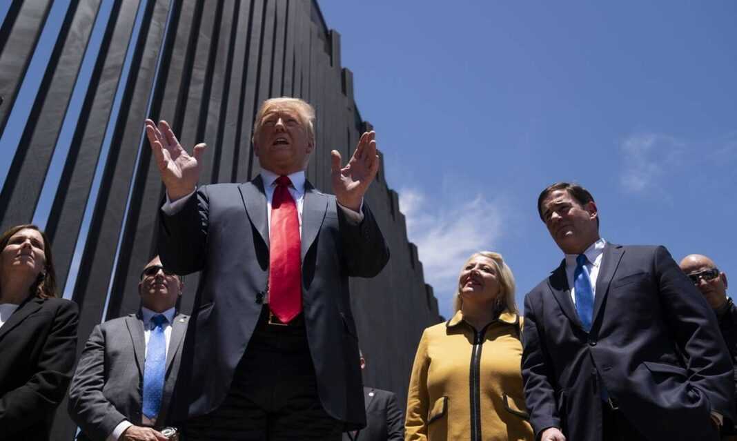 Ο Ντόναλντ Τραμπ επαίνεσε την Τρίτη (23/6) από την Αριζόνα την αποτελεσματικότητα του τείχους που ανεγέρθηκε σε ένα τμήμα των συνόρων μεταξύ των Ηνωμένων Πολιτειών και του Μεξικού, διαβεβαιώνοντας ότι ήταν πολύ χρήσιμο ιδίως ενάντια στην πανδημία της Covid-19.
