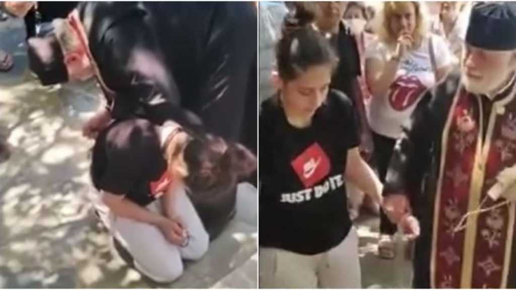 Οι συγκλονιστικές στιγμές οι οποίες εκτυλίχθηκαν στον Ιερό Ναό των Αγίων Ισιδώρων έχουν αποτυπωθεί σε τουλάχιστον τρία βίντεο, τα οποία έκαναν τον γύρο των social media, προκαλώντας σοκ και δέος. Στο ένα από αυτά, το οποίο αναρτήθηκε από τον ραδιοτηλεοπτικό σταθμό Ηλέκτρα, εμφανίζεται ο χαρισματικός πατέρας Δημήτριος να σηκώνει απαλά την μπλούζα της άρρωστης κοπέλας και να ακουμπά πάνω στην πλάτη της τον Τίμιο Σταυρό, ενώ η ίδια έχει γονατίσει μπροστά του, σκύβοντας ευλαβικά το κεφάλι.
