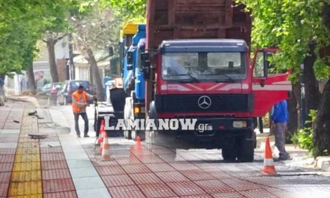 Λαμία: Αναζητείται η γυναίκα που κλέβει τις… πλάκες του πεζοδρομίου!