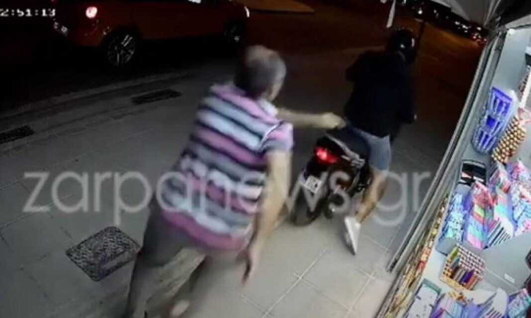 Όπως φαίνεται στο βίντεο του zarpanews.gr, νεαρός, φορώντας κράνος, εμφανίζεται με πρόθεση να αγοράσει αναψυκτικό και μερικά πακέτα τσιγάρα, όμως εν τέλει γίνεται «καπνός» με τον ιδιοκτήτη του περιπτέρου στο κατόπι του.