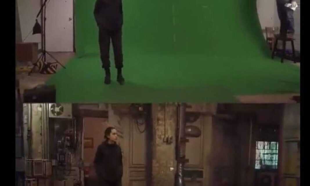 Στο βίντεο η ηθοποιός φαίνεται να κινείται με μεγάλη άνεση σαν να βρίσκεται στα σκηνικά της ταινίας που βλέπουμε στο κάτω μέρος της οθόνης. Το γύρισμα όμως έχει γίνει σε ένα μικρό δωμάτιο, λίγων τετραγωνικών με τους τοίχους σε πράσινο φόντο.