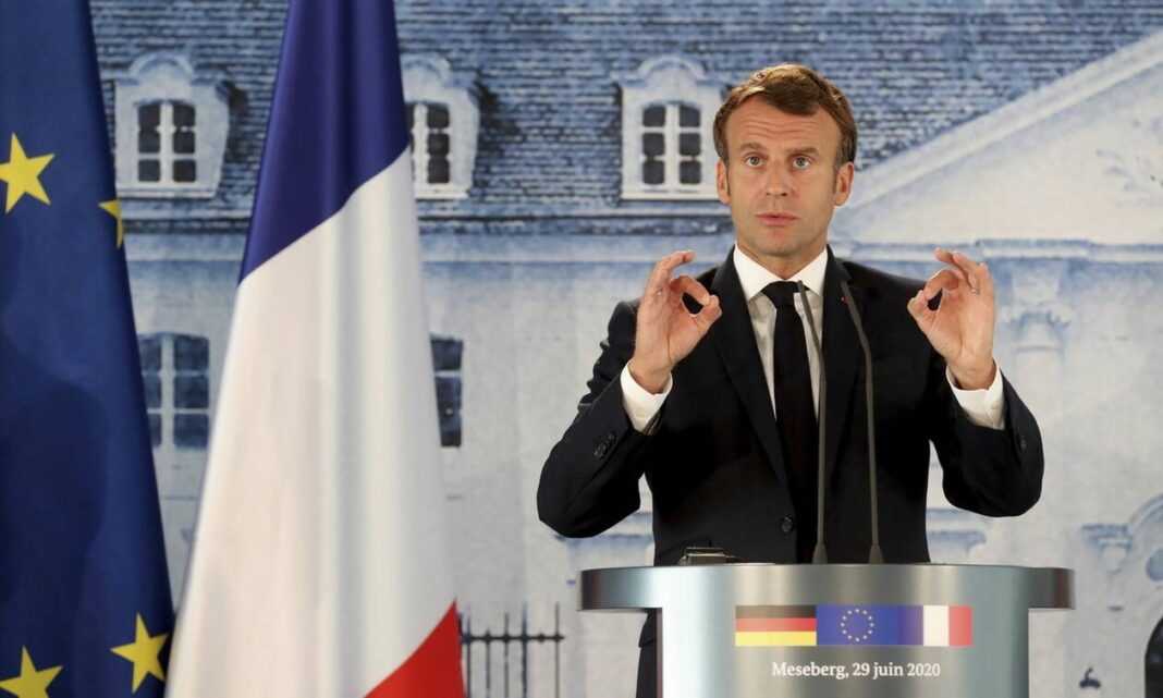 Κατά την κοινή συνέντευξη τύπου που παραχώρησε από το Μέζεμπεργκ της Γερμανίας με την καγκελάριο Άνγκελα Μέρκελ, στην πρώτη δια ζώσης συνάντησή τους από την αρχή της πανδημίας του κορονοϊού, ο Γάλλος πρόεδρος χαρακτήρισε την Τουρκία ως «τον πρώτο εξωτερικό παίχτη» στην υπόθεση της Λιβύης, επισημαίνοντας ότι η Άγκυρα «δεν σέβεται καμία από τις δεσμεύσεις της Διάσκεψης του Βερολίνου» και εισάγει τζιχαντιστές από την Συρία.