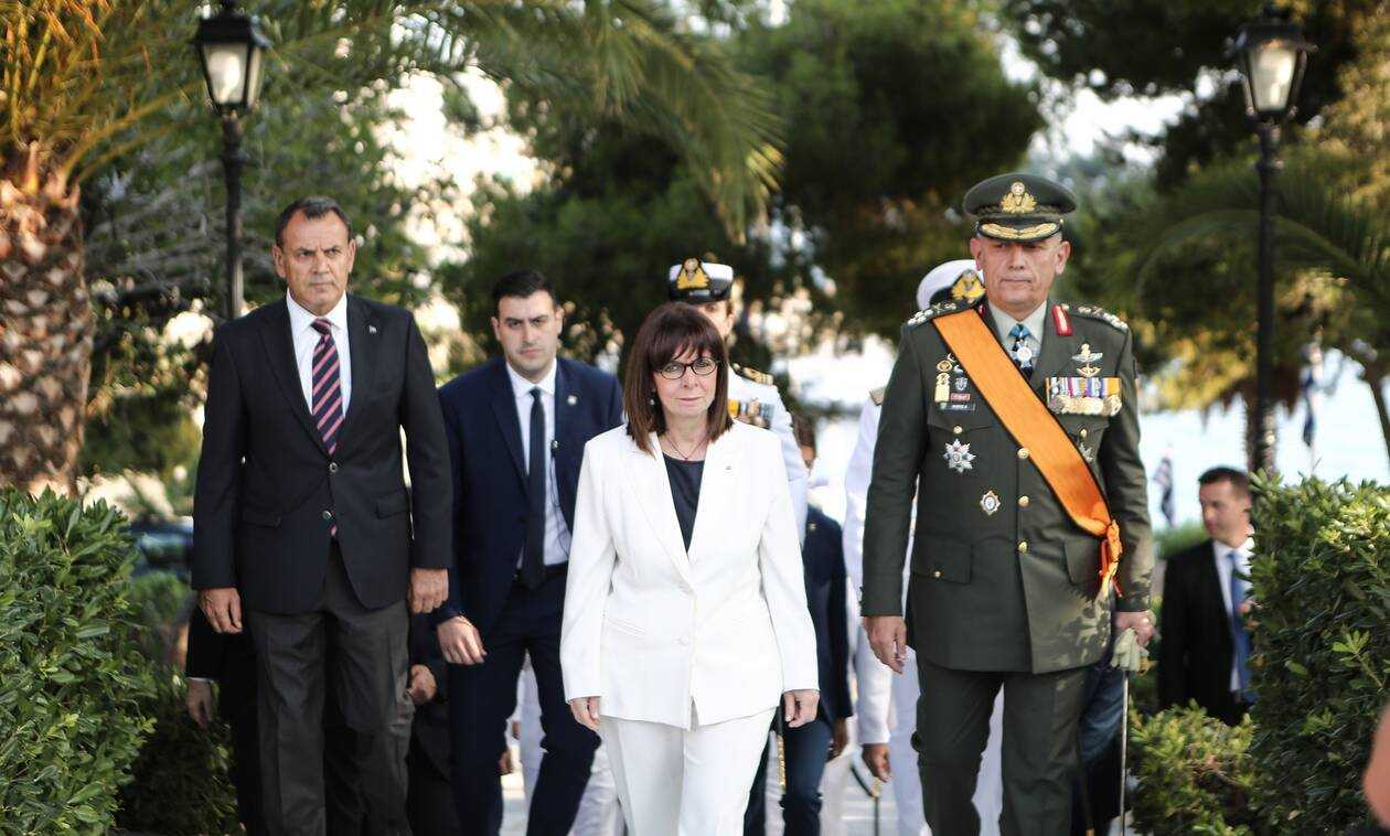 Τα ξίφη στους νέους και νέες σημαιοφόρους του Πολεμικού Ναυτικού επέδωσε η Πρόεδρος της Δημοκρατίας, Αικατερίνη Σακελλαροπούλου, κατά τη διάρκεια ειδικής τελετής που πραγματοποιήθηκε απόψε στις εγκαταστάσεις της σχολής Ναυτικών Δοκίμων, στον Πειραιά.