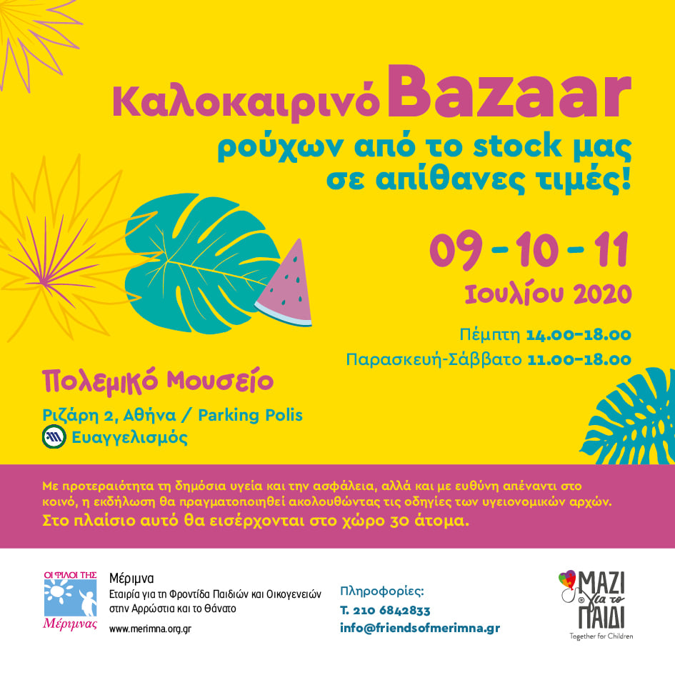 Στο φετινό Καλοκαιρινό Bazaar Ρούχων, που θα πραγματοποιηθεί, μεταξύ 9/7 – 11/7,