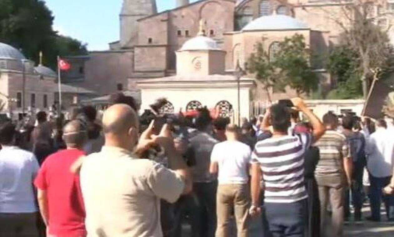 Λίγα λεπτά μετά την απόφαση-ντροπή που πήρε το τουρκικό Συμβούλιο της Επικρατείας που επιτρέπει στον Ρετζέπ Ταγίπ Ερντογάν να μετατρέψει την Αγία Σοφία σε τζαμί, κόσμος έχει αρχίσει, ήδη, να μαζεύεται σε πανηγυρικό κλίμα στον προαύλιο χώρο του ναού