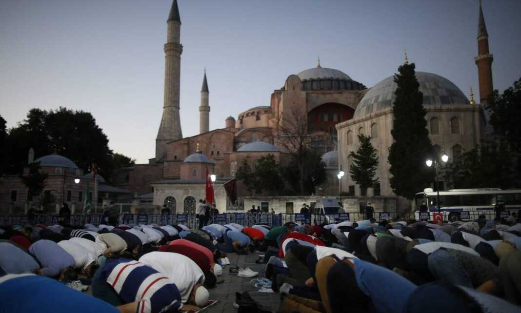 Το απόγευμα της Παρασκευής (10/07) ο μουεζίνης κάλεσε τους πιστούς σε προσευχή, μπροστά από την Αγία Σοφία, στην πλατεία Σουλταναχμέτ.