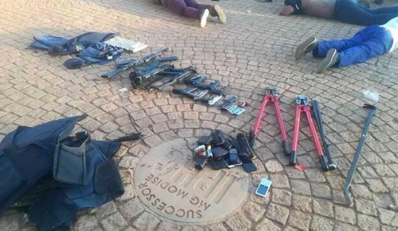 Σύμφωνα με ανακοίνωση της αστυνομίας βρέθηκαν 25 όπλα πάνω στους συλληφθέντες ενώ υπάρχουν και όμηροι μέσα στην εκκλησία, με τους διαπραγματευτές να βρίσκονται στο σημείο.