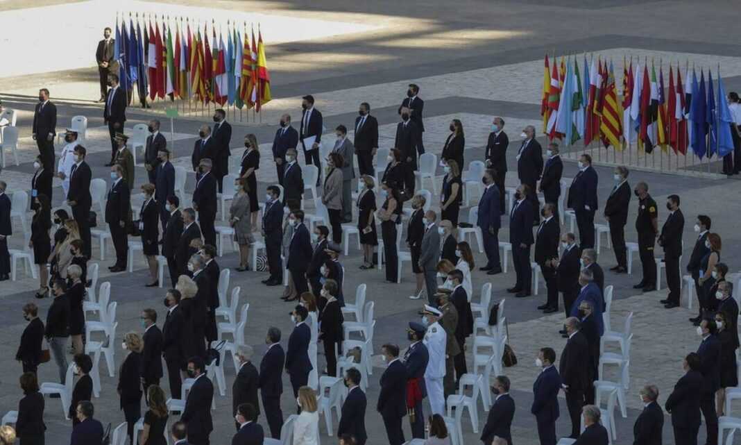 Φόρο τιμής στα θύματα του κορωνοϊού στην Ισπανία και στους εργαζόμενους στον τομέα της υγείας απέτισαν φορώντας μαύρες μάσκες Iσπανοί και ξένοι αξιωματούχοι, σε μια τελετή που πραγματοποιήθηκε σήμερα στην πρωτεύουσα με επικεφαλής τον βασιλιά Φελίπε.