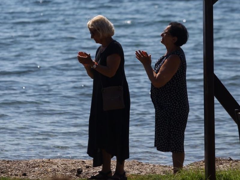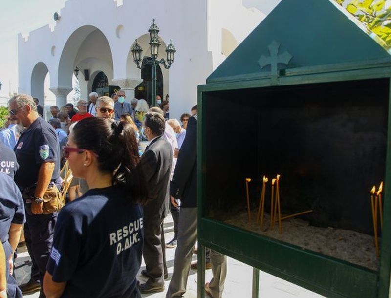 Τρισάγιο στη μνήμη των θυμάτων της φονικής πυρκαγιάς στο Μάτι στις 23 Ιουλίου 2018, τελέστηκε μετά το μνημόσυνο στην Αργυρά Ακτή, παρουσία της Προέδρου της Δημοκρατίας, Κατερίνας Σακελλαροπούλου.