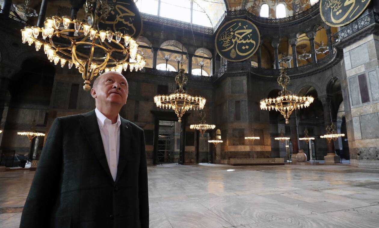 Χθες (20/07) ο Ρετζέπ Ταγίπ Ερντογάν επισκέφθηκε με το επιτελείο του και με τον μικρό εγγονό του την Αγία Σοφία, προκειμένου να δει από κοντά πως προχωρούν οι εργασίες μετατροπής σε τζαμί.