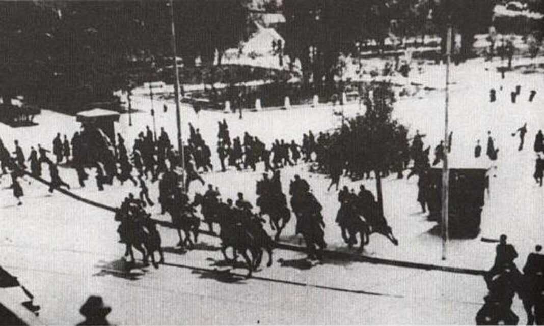Από τα σημεία συγκέντρωσης (Μοναστηράκι, Πλατεία Λαυρίου, Ομόνοια κ.α.), το ανθρώπινο ποτάμι κινήθηκε προς το κέντρο, κρατώντας ελληνικές σημαίες και φωνάζοντας συνθήματα, όπως «Όχι στην Επέκταση» και «Έξω οι Βούλγαροι φασίστες από τη Μακεδονία και τη Θράκη». Τα κατοχικά θωρακισμένα οχήματα προσπάθησαν να διαλύσουν τους διαδηλωτές. Οι συγκρούσεις δεν άργησαν να γενικευτούν.