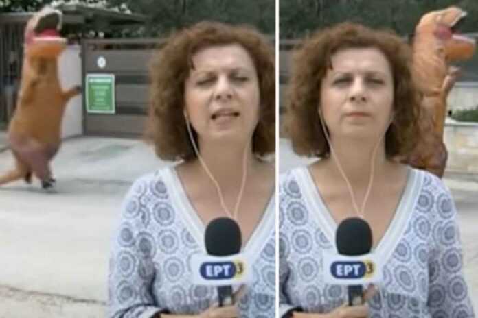 Την ώρα που η δημοσιογράφος της ΕΡΤ, Εύα Κουσιοπούλου, παρουσίαζε το ρεπορτάζ για τα κρούσματα κορωνοϊού, που έχουν εντοπιστεί σε κατασκήνωση που βρίσκεται στη Νέα Φώκαια, στη Χαλκιδική, ξαφνικά, ξεπρόβαλε ένας δεινόσαυρος.