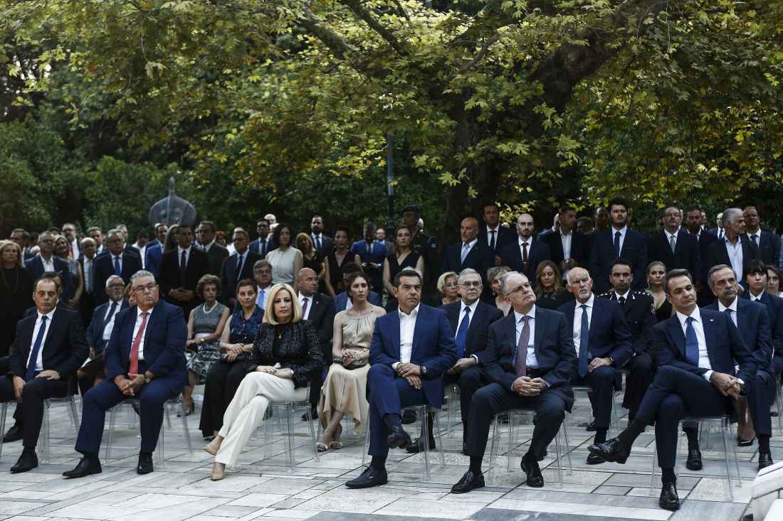 Μπορεί ο λόγος της δεξίωσης στο Προεδρικό Μέγαρο να είναι σοβαρός, η 46η επέτειος από την πτώση της Δικτατορίας, ωστόσο αυτό δεν αναιρεί το ότι σε μια δύσκολη ημέρα για την Ορθοδοξία με τη μετατροπή της Αγίας Σοφίας σε τζαμί, αλλά και για τη χώρα με τις πυρκαγιές να μαίνονται, οι επικεφαλής αυτού του τόπου βρέθηκαν σύσσωμοι εκεί για να γιορτάσουν.