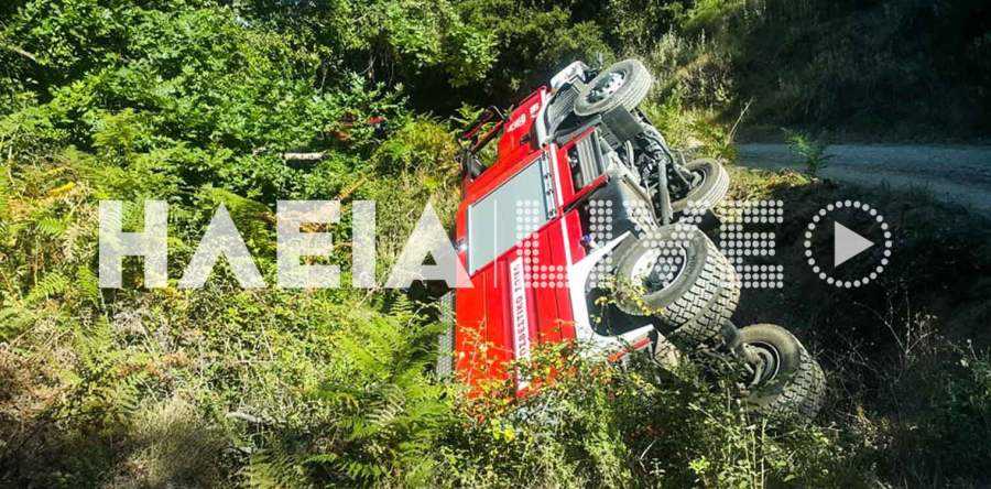 Πυροσβεστικό όχημα που έσπευδε ως ενίσχυση στο μέτωπο της πυρκαγιάς στο χωριό Κλινδιά της Ηλείας ανετράπη σε αγροτικό δρόμο, με αποτέλεσμα να τραυματιστούν, ευτυχώς ελαφρά, δύο Πυροσβέστες