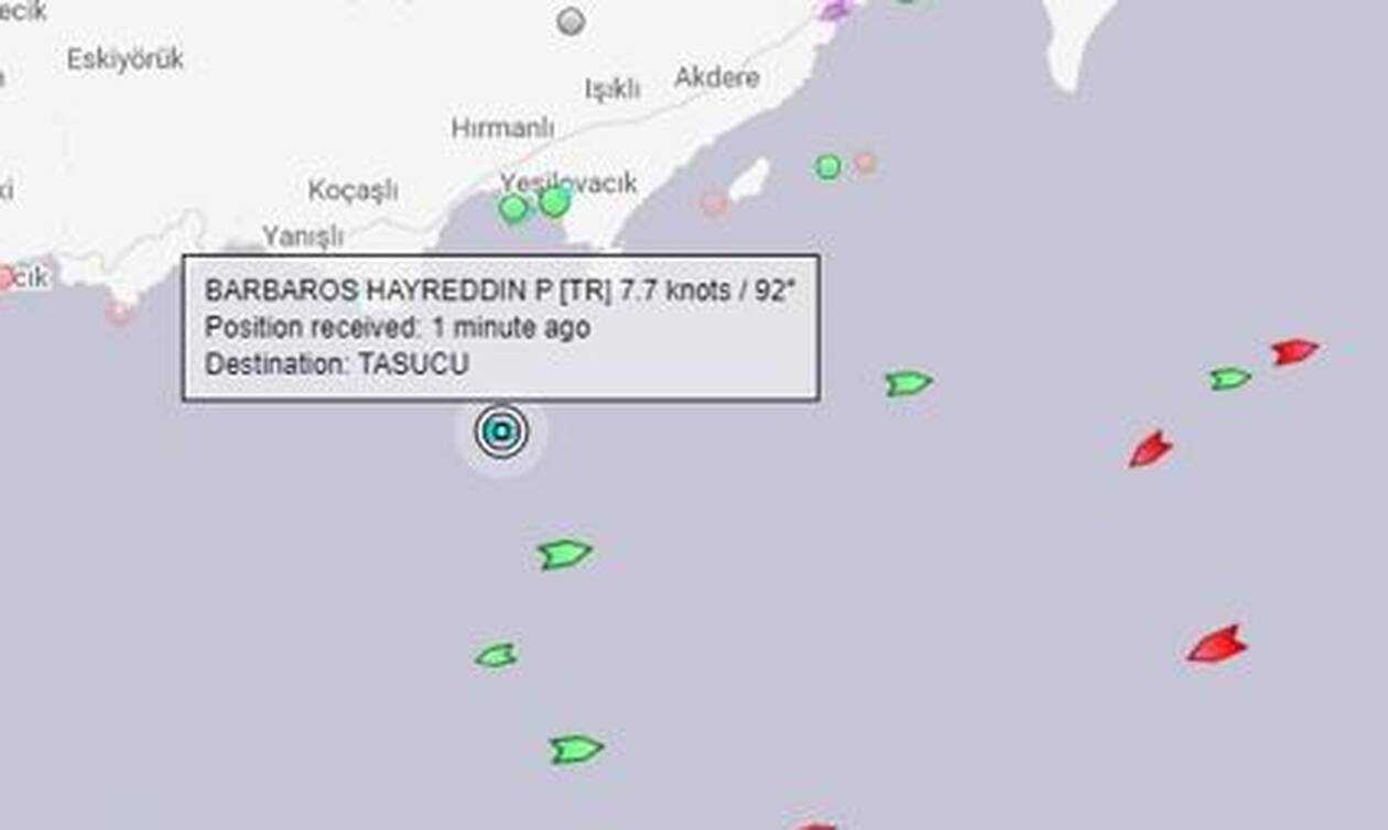 Σύμφωνα με το στίγμα του στο marinetraffic.com, το Barbaros απέπλευσε από το Tasucu, λιμάνι που βρίσκεται απέναντι από το Ριζοκάρπασο.