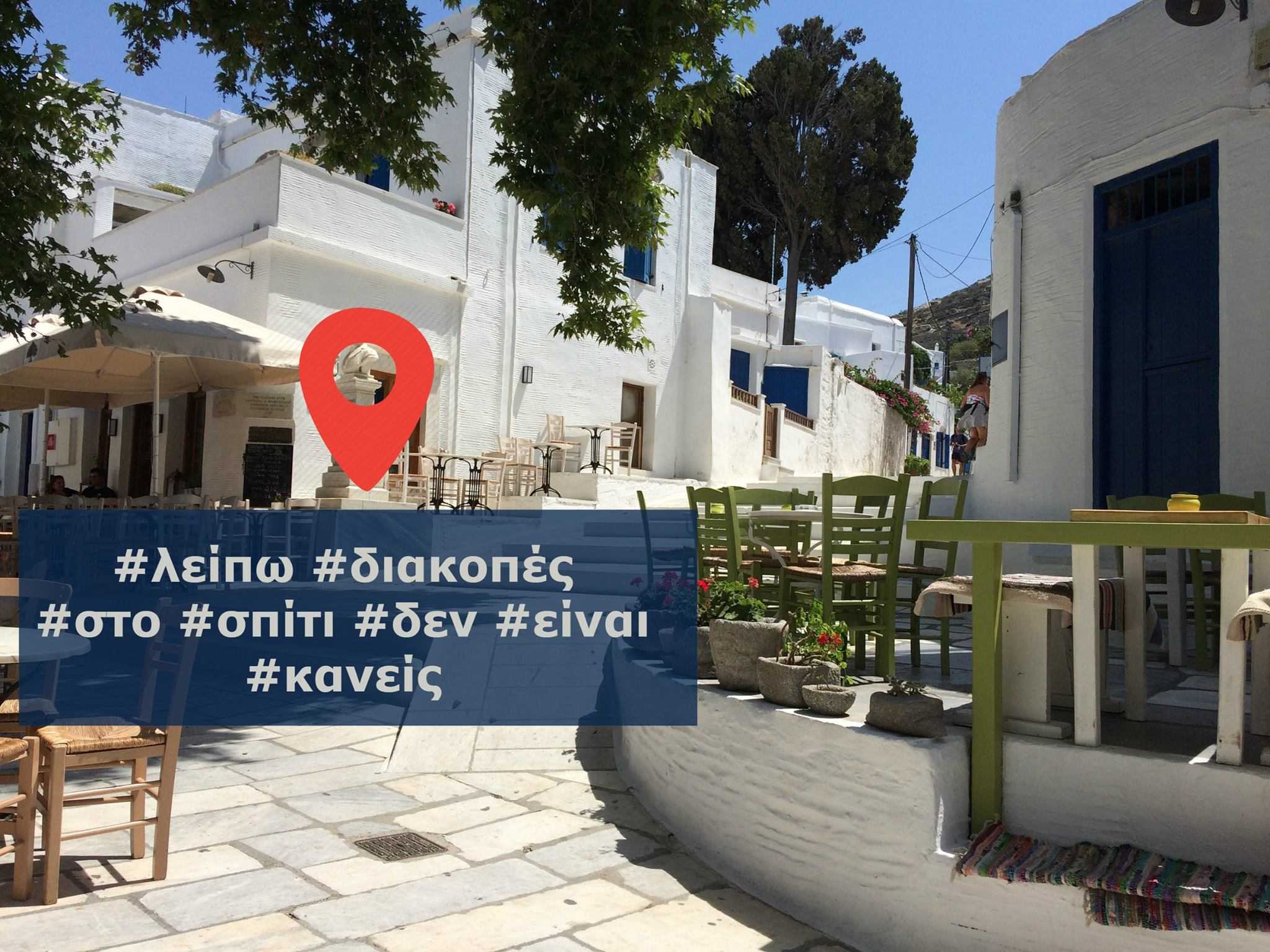 Το tweet της ΕΛΑΣ συνοδεύεται από μια φωτογραφία που παραπέμπει σε διακοπές σε ελληνικό νησί με τα hashtag «#λείπω #διακοπές #στο #σπίτι #δεν # είναι #κανείς».