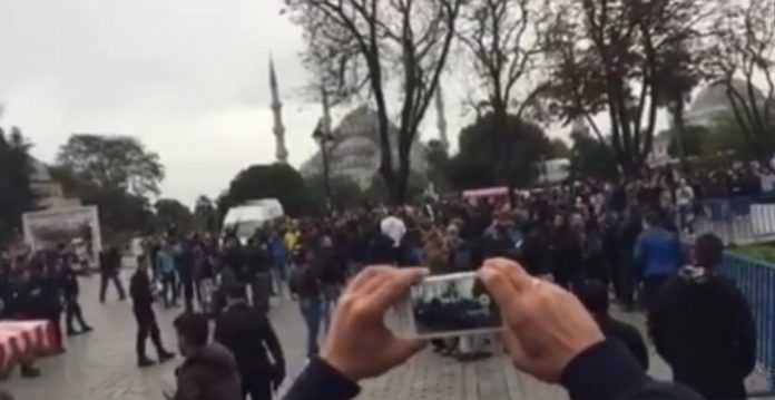 Οι Ενωσίτες πήγαν το πρωί της Τετάρτης στην Αγιά Σοφιά, έδωσαν κιτρινόμαυρο χρώμα στον προαύλιο του ναού και φώναξαν το γνωστό σύνθημα, «μία ιστορία από την Πόλη».