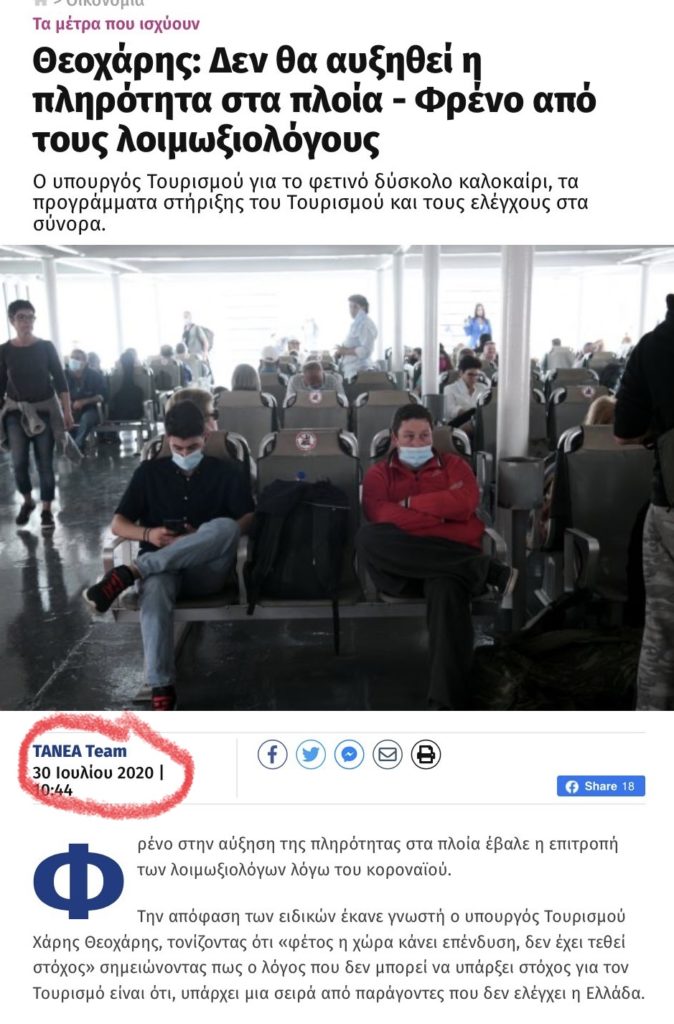 Λίγες ημέρες πριν, στις 30 Ιουλίου, ο υπουργός τουρισμού Χάρης Θεοχάρης ανακοίνωνε ότι δεν πρόκειται να αυξηθεί η πληρότητα στα πλοία, διότι η επιτροπή λοιμωξιολόγων θεωρούσε μία τέτοια ενέργεια ως κίνδυνο για τη δημόσια υγεία. Ήταν αυτονόητο μία τέτοια απόφαση να διατηρηθεί, ειδικά στις δύσκολες στιγμές που ζούμε με κατακόρυφη αύξηση των κρουσμάτων κορονοϊού.
