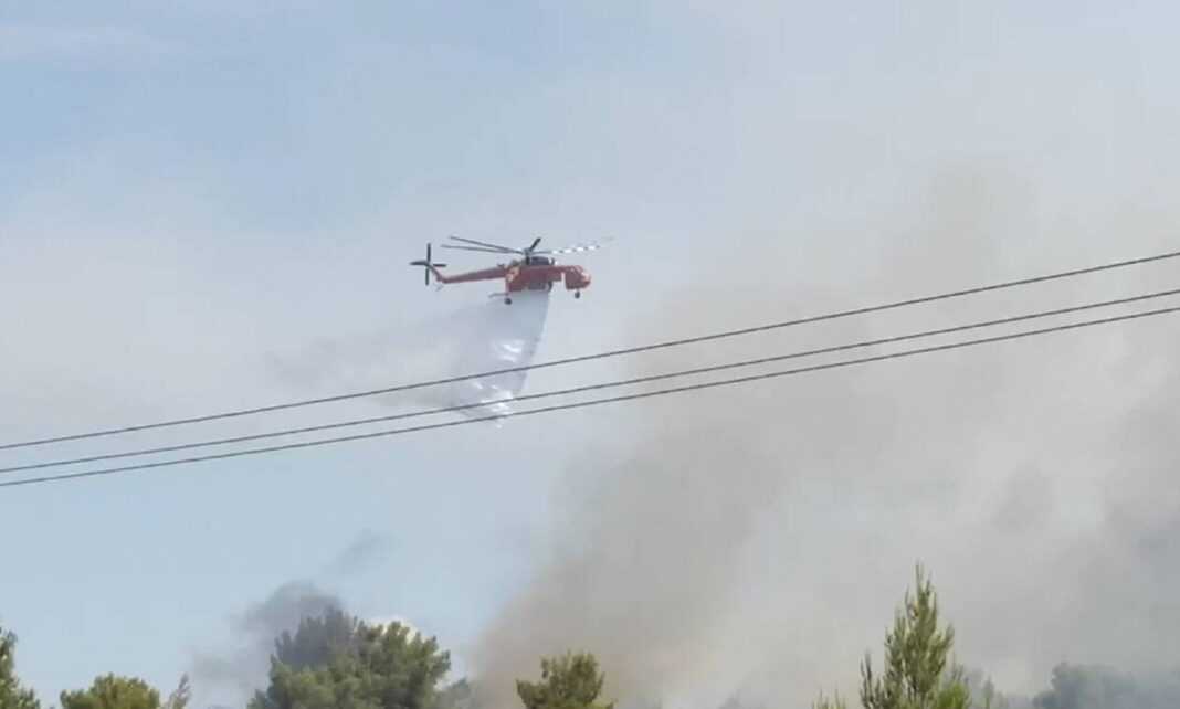 Στην περιοχή επιχειρούν 17 πυροσβέστες και ένα πεζοπόρο τμήμα με τρία οχήματα, ενώ το έργο των επίγειων δυνάμεων συνδράμει από αέρος ένα ελικόπτερο.