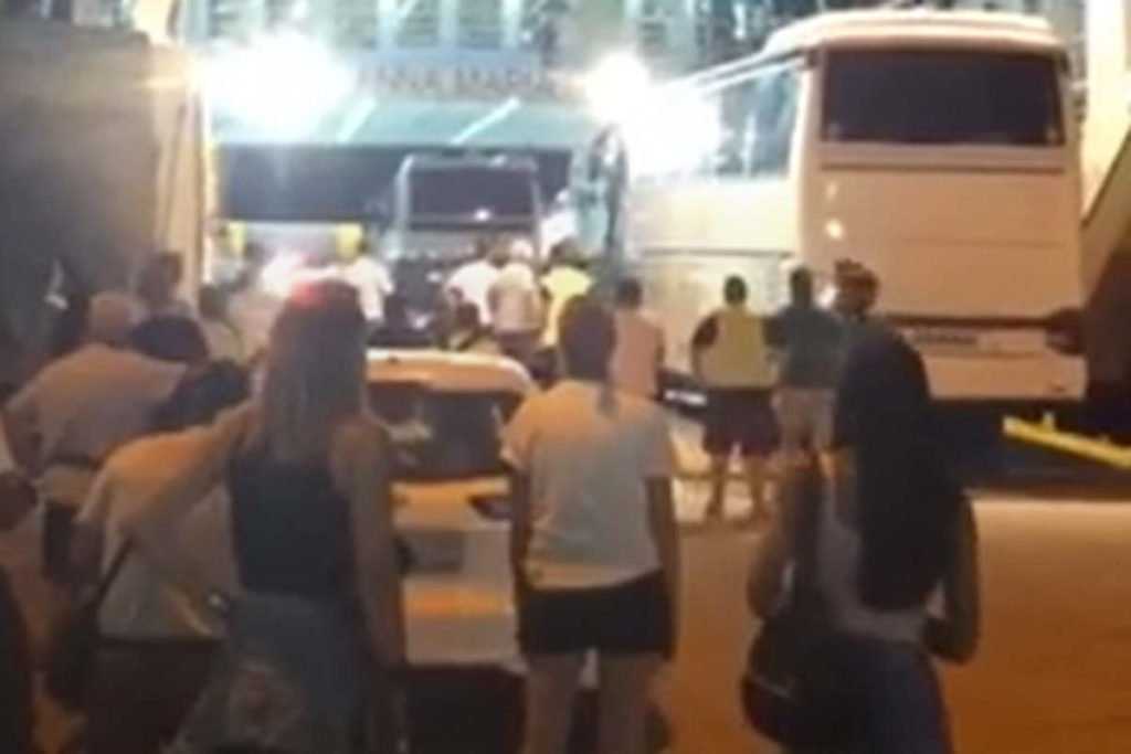 Σύμφωνα με το protothema.gr, πάνω από 150 οχήματα περίμεναν εχθές το βράδυ να επιβιβαστούν στο φέρι, μεταξύ των οποίων και ένας οδηγός λεωφορείου.