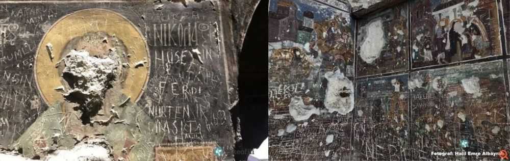 Ο μικρασιατικής καταγωγής βουλευτής υπογραμμίζει: «Δυστυχώς, σε όλες τις εκκλησίες στη Μικρά Ασία, που αναγκάστηκαν να εγκαταλείψουν οι παππούδες μας μετά τον ξεριζωμό, οι άγιοι στις τοιχογραφίες-έργα τέχνης είναι αόμματοι! Δεν γλίτωσαν από τη βαρβαρότητα αμόρφωτων ή φανατικών Τούρκων, που συχνά αφήνουν με καμάρι και τα πειστήρια του εγκλήματος, χαράσσοντας τα ονόματά τους στις αγιογραφίες.