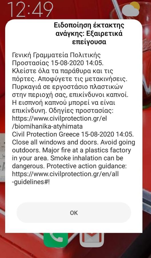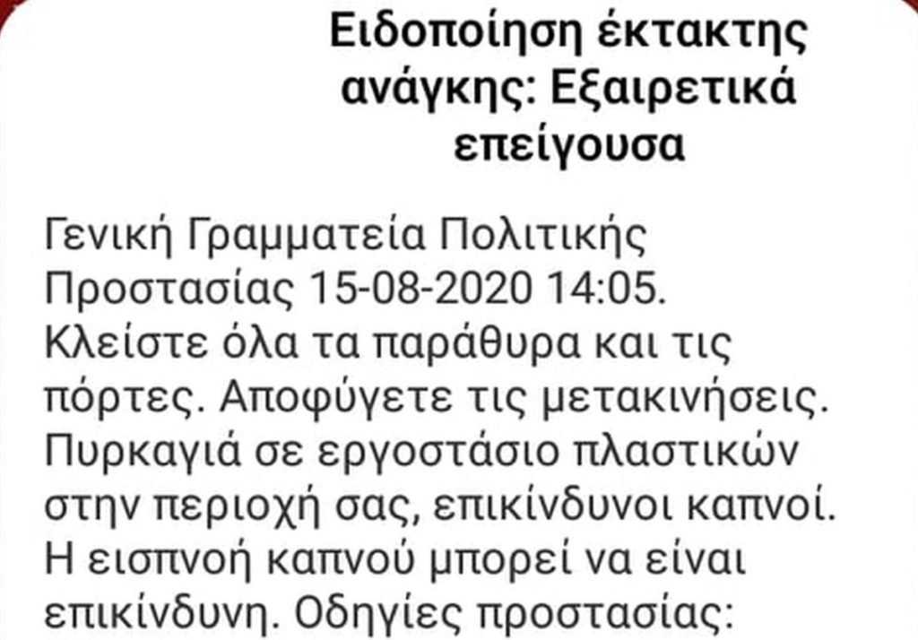 Σύμφωνα με τις έως τώρα πληροφορίες, δεν έχουν λάβει όλοι οι κάτοικοι το προειδοποιητικό μήνυμα στα κινητά τους, παρά το γεγονός ότι βρίσκονται στην ίδια περιοχή.