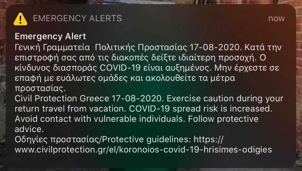 Έκτακτο μήνυμα έστειλε το 112 υπό τον κίνδυνο διασποράς του κορωνοϊού μετά την επιστροφή των παραθεριστών.