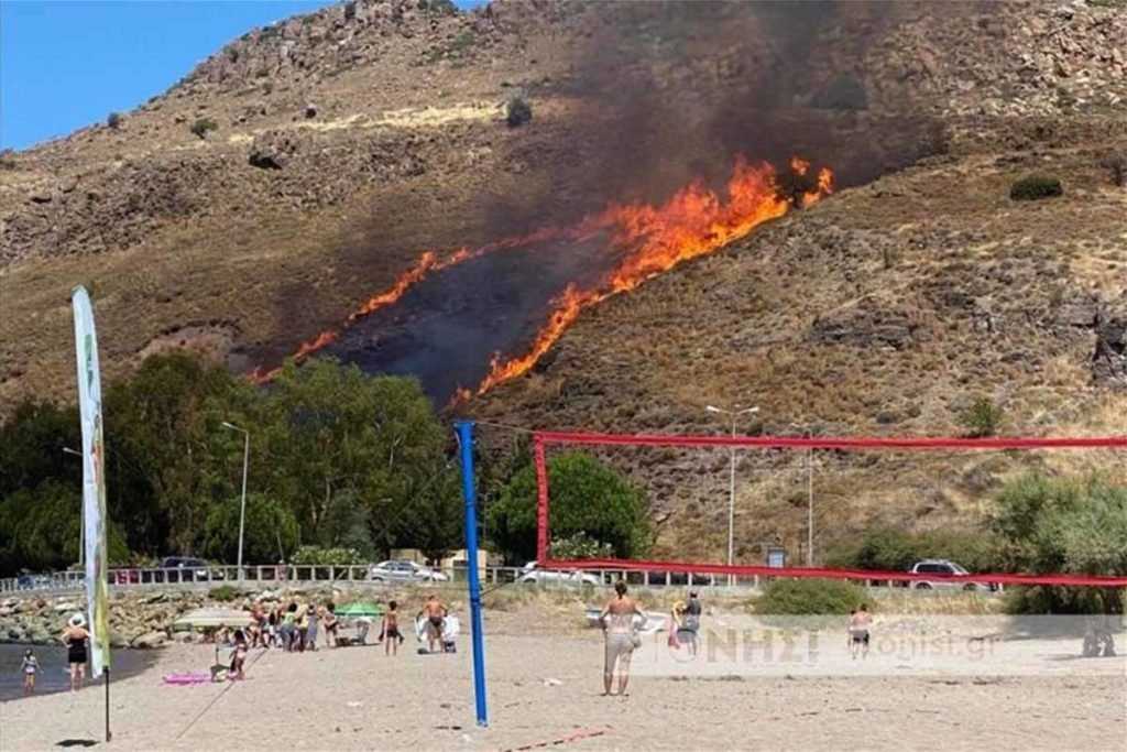 Τρόμος στη Μυτιλήνη με τη μεγάλη φωτιά που ξέσπασε το πρωί και καίει εκτάσεις χαμηλής βλάστησης μεταξύ Πέτρας και Μολύβου.