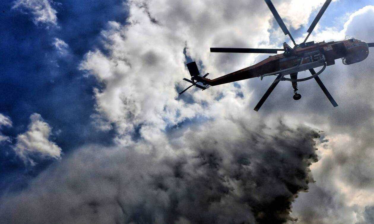 Παράλληλα, από αέρος πραγματοποιούν ρίψεις νερού ένα αεροσκάφος και ένα ελικόπτερο.