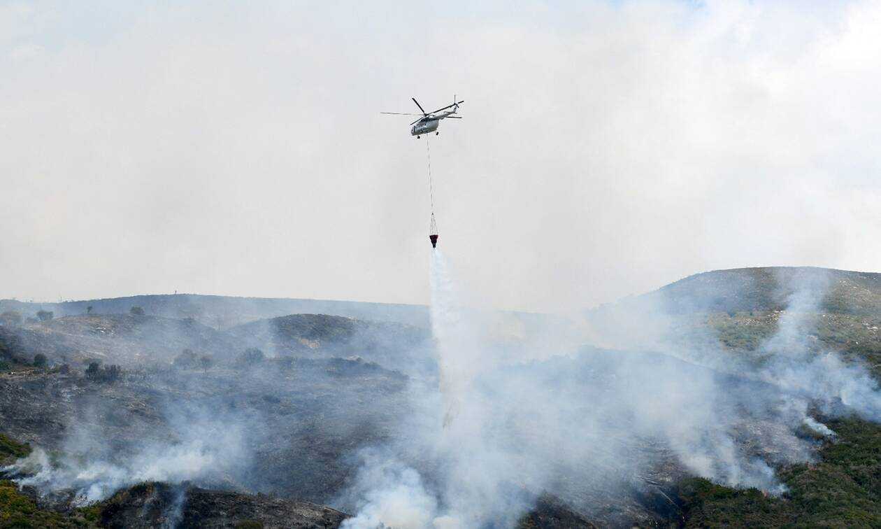 Από αέρος συνδράμουν στην επιχείρηση κατάσβεσης 2 αεροσκάφη κι ένα ελικόπτερο.